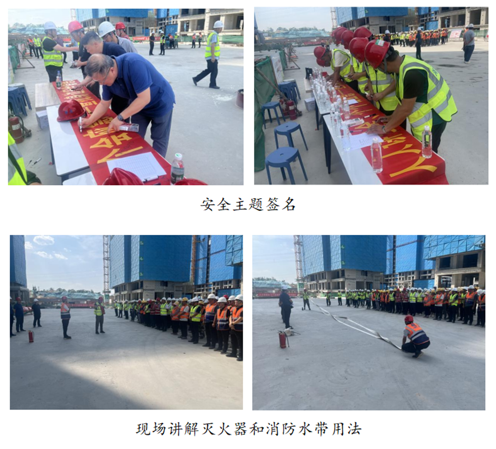 活動期間,大家積極參與安全主題簽名和主題宣誓,講解員現(xiàn)場講解消防水帶和滅火器的用法,解答安全生產(chǎn)相關知識,并開展了消防實戰(zhàn)演練。集團公司分管安全生產(chǎn)的總經(jīng)理助理黃志澎作重要講話,強調(diào)了安全生產(chǎn)的重要性,要求各單位扎實做好今年防汛工作,并為一線工人發(fā)放防暑降溫藥品和安全知識手冊200套。